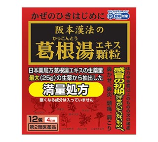 日本薬局方葛根湯エキスの生薬最大量25g処方から抽出して得られたエキスを全量配合した葛根湯顆粒です。