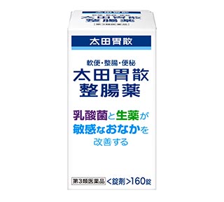 太田胃散整腸薬は、2種類の生薬と乳酸菌を配合。2つの働きで、敏感なおなかをを改善します。