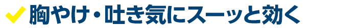 効能・効果:胃痛、胸やけ、胃酸過多、胃部不快感、胃部膨満感、もたれ(胃もたれ)、胃重、胸つかえ、げっぷ(おくび)、はきけ(むかつき、胃のむかつき、二日酔・悪酔のむかつき、嘔気、悪心)、嘔吐、飲み過ぎ(過飲)